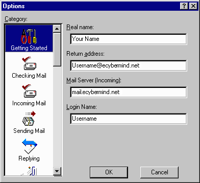 In the Mail Server (Incoming) text box, type mail.ecybermind.net